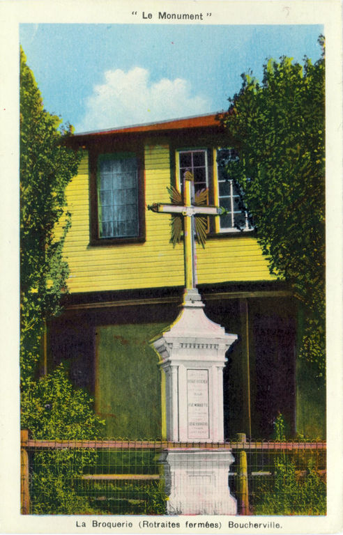 En 1884, Mgr Taché effectue le don d’une parcelle de terrain à la fabrique de la paroisse Sainte-Famille. Une croix commémorative est érigée entre la villa La Broquerie et le boulevard Marie-Victorin. Lors de l’inauguration, Mgr Taché reprend l’information de l’Annuaire de Ville-Marie, bien qu’il s’agisse de la seule mention d’un fort Saint-Louis à Boucherville.